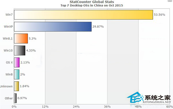 再来看一下我们最为关心的中国市场份额。10月份Win10在中国市场占有率为4.33%,相比9月份只增加了0.5个百分点,看来近期中国用户的Win10升级热情已经跌倒了谷底。Win10 TH2更新即将发布,或许此次更新能够带来新一波升级高潮。