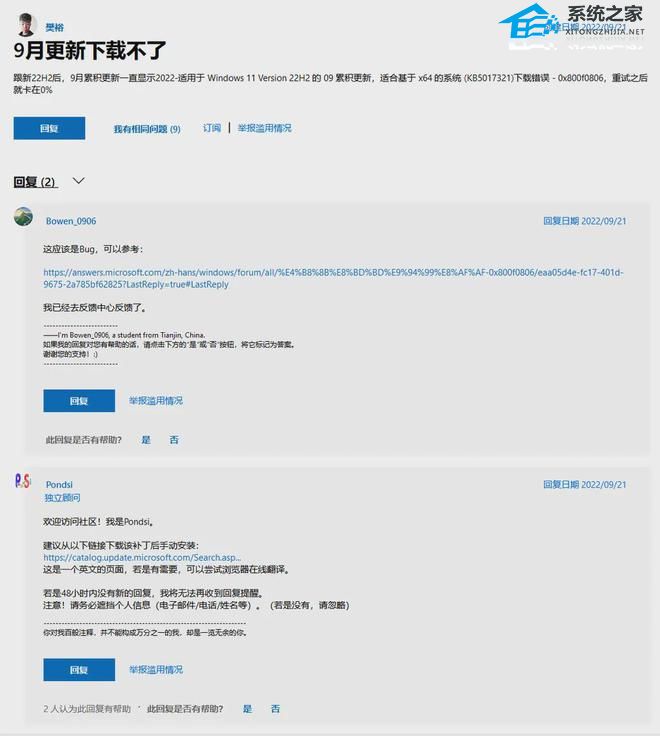 系统之家消息,据报道,Windows 11 KB5017321是 22H2 版本的新的累积更新,目前有大量用户遇到了KB5017321 更新失败,并出现 0x800F0806 错误。导致很多用户升级Win11 22H2失败了,针对这个问题,微软正在调查这些报告。