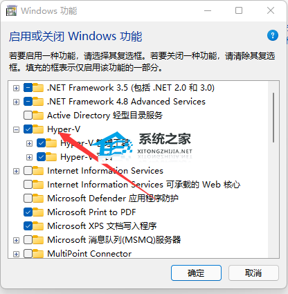 2、开启或关闭 Windows 功能-勾选 Hyper-V\Windows 虚拟机监控平台 成功后,必须重启系统。