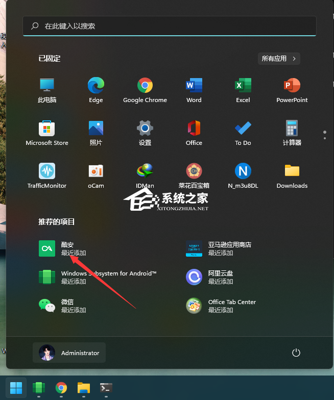 在开始菜单可以看到新安装的安卓应用。