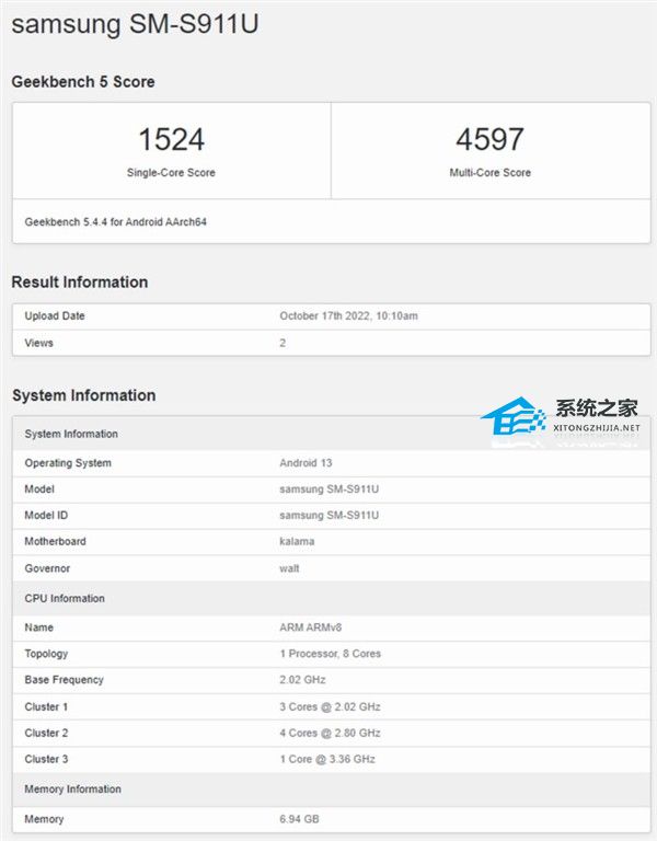 近日,骁龙8Gen2首个跑分泄露,源于三星的GalaxyS23系列,CPU大核频率3.4GHz,GK5单核1524分,多核4597分。在此前,骁龙8Gen1跑分分别是1229、3706,而骁龙8+Gen1的跑分分别是1311、4070。