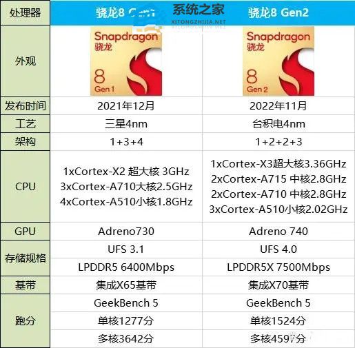 2、架构升级:CPU由1+3+4三丛集架构升级为1+2+2+3四簇架构。