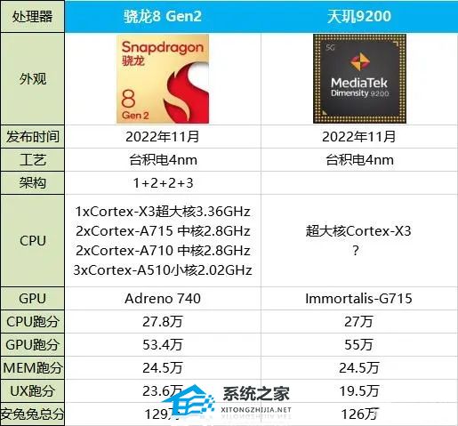 天玑9200和骁龙8gen2都是即将发布的手机芯片,也是联发科和高通最新的芯片,并且两款芯片也都即将会在11月发布,因此有不少用户好奇这两款芯片哪一款好,接下来小编就为大家详细对比一下骁龙8gen2和天玑9200跑分。