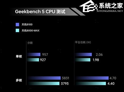 6、天玑8100的cpu单核957分、多核3831分。