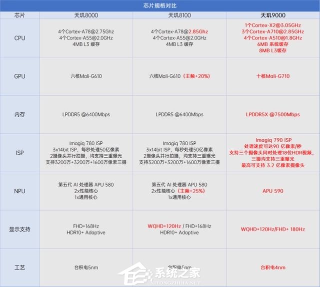 7、可以看到,天玑9000在性能上是全面压制天玑8000的,不过成本也更高,所以搭载设备的价格也会更贵。