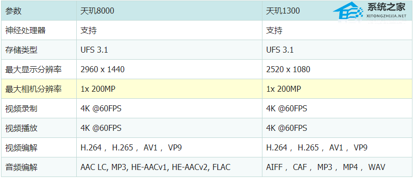 在图形性能上,天玑8000支持最高2K分辨率,天玑1300则不支持。