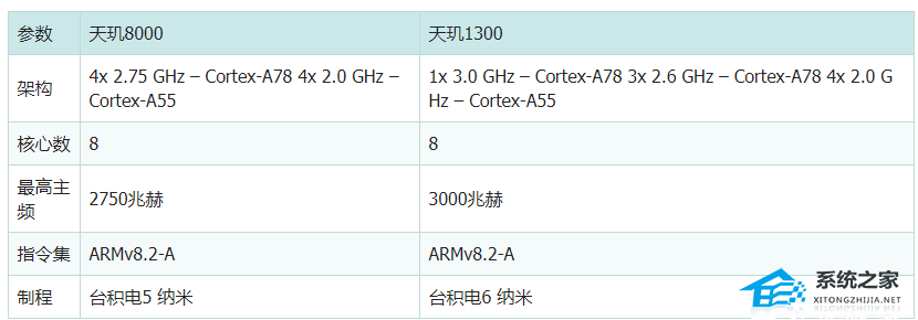 两者多是A78大核+A55小核。天玑8000拥有4个2.75Ghz的A78大核,CPU性能会更强。同时采用更更先进的旗舰级台积电5nm工艺制程。