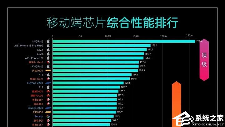 在综合性能方面,靠前的芯片全部来自苹果,别说满血版A15,骁龙8+和残血版A15相比还是略逊一丢丢。满血版A15得分178.7,领先于骁龙8+的157.4得分大概13.5%,这个差距对骁龙8gen2来说,理论上是完全可以追上来并且超越的。