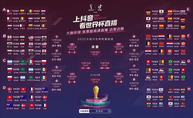 抖音集团作为 2022 世界杯持权转播商、中央广播电视总台 2022 世界杯官方直播合作伙伴,将覆盖 28 天全赛程,提供全场次、高清免费直播。抖音搜索“世界杯”进入专题页,即可观赛。