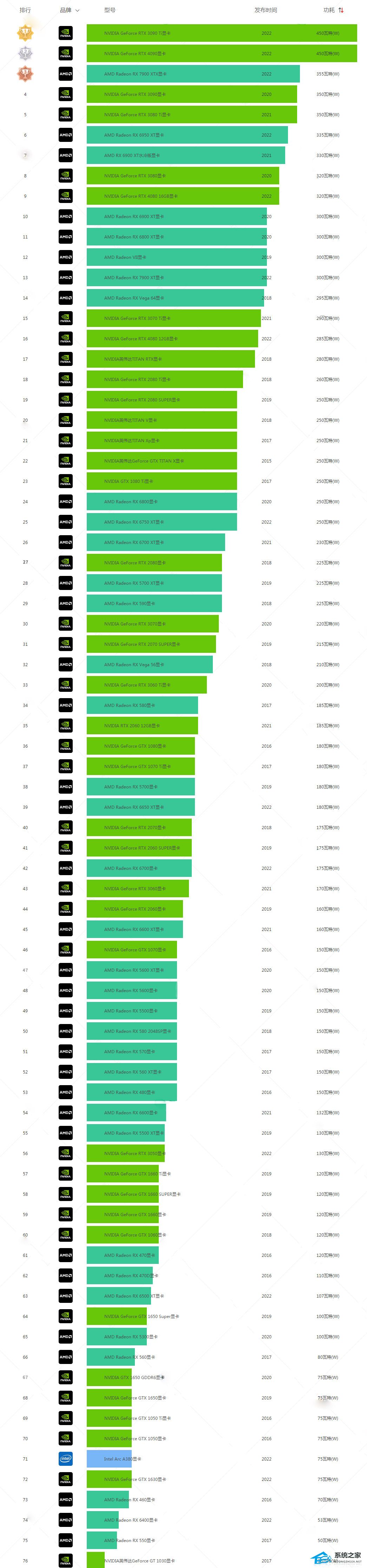 最新显卡功耗天梯图2022