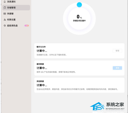 存储管理包括聊天与文件(包括聊天记录、文件以及下载的资源)、缓存数据(使用 QQ 产生的临时数据,清理不影响正常使用)、其他数据(包含 QQ 应用程序、频道内容、其他帐号的文件和聊天记录等,如需清理其他帐号的内容,请切换帐号)。