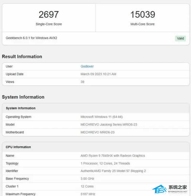 AMD R9 7845HX处理器Geekbench 6跑分公开:12核24线程,单核2697分,多核15039分。而比较上一代的产品性能,单核提升28%,多核提升50%左右。性能提升还是非常不错的。另外测试搭载这款处理器的机器为机械革命蛟龙 MRID6-23,可能会是即将推出的机械革命蛟龙16电脑。