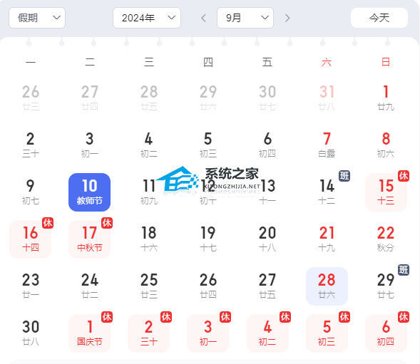 以上就是系统之家小编为你带来的关于“2024年假期放假时间表一览”的全部内容了,感谢您的阅读,更多精彩内容请关注系统之家官网。