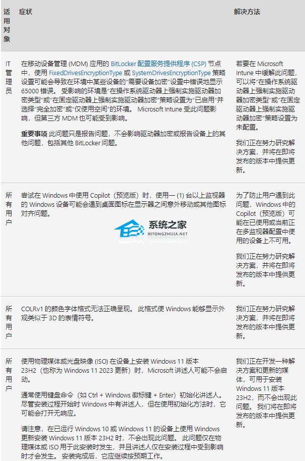 此更新中的已知问题
