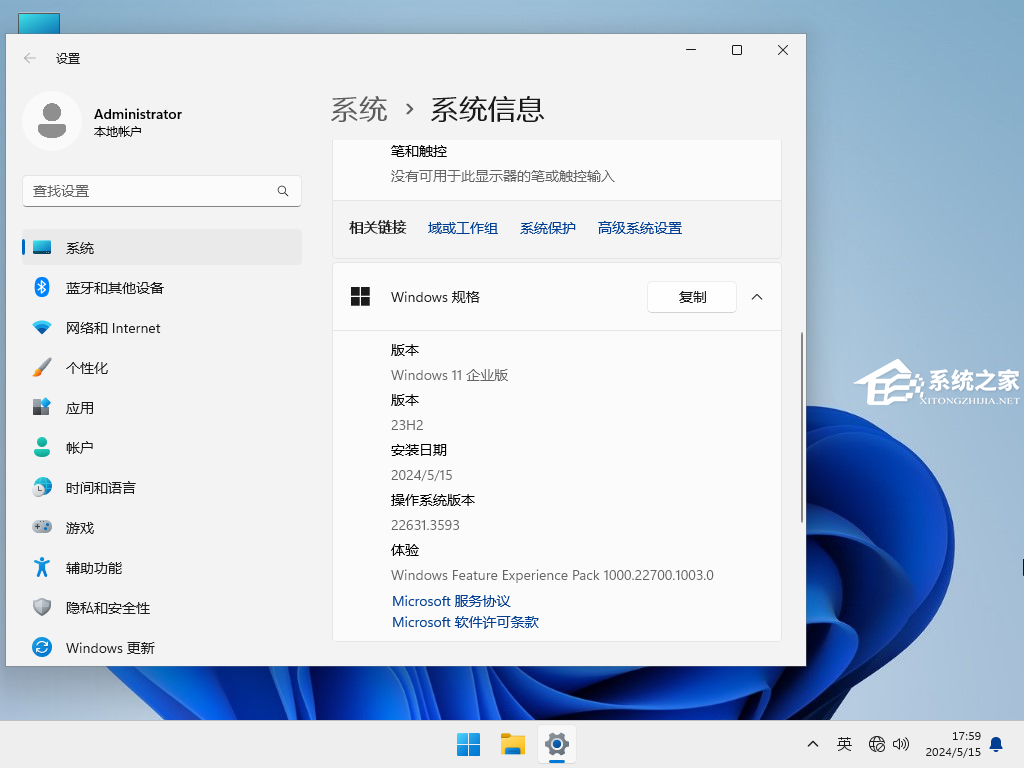 Windows 11 23H2 企业版包括此前对 Windows 11 版本 22H2 的累积更新中的所有功能和修补程序,是专为企业用户设计的操作系统,针对企业用户的需求进行了优化和增强,系统也更加稳定。采用微软最新 Windows 11 23H2 22631.3593 64位 企业版为基础进行优化制作,全程离线制作,百分百安全无毒,所有高危漏洞已经全部安装,做了少量优化,系统保持原汁原味,支持SSD固态硬盘的4K对齐,完美兼容新老机型。安装好后系统分区占用 18.9 GB。