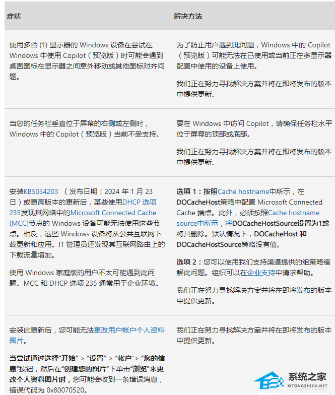本次更新中的已知问题