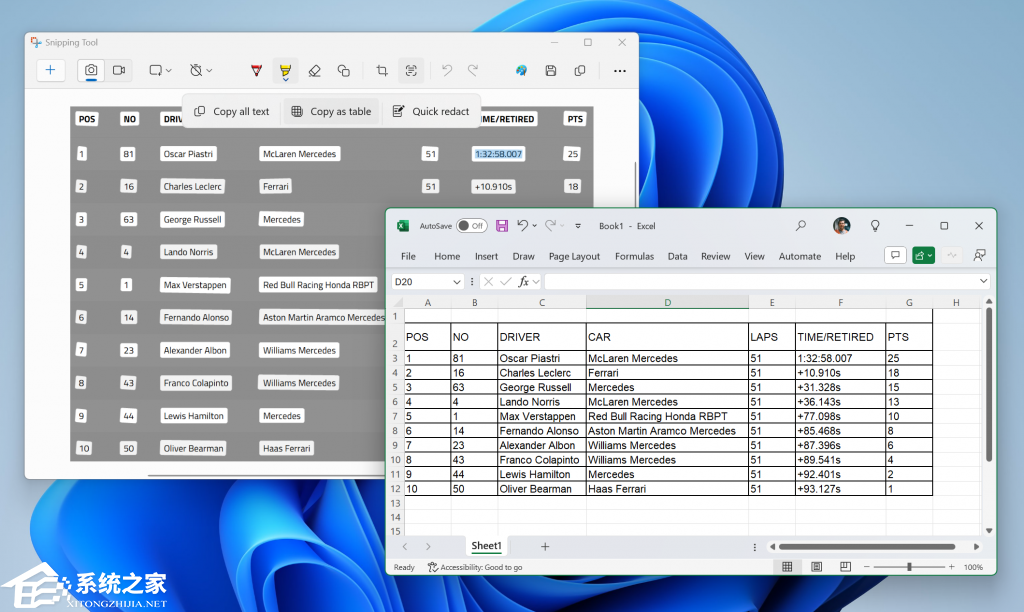 微软正邀请 Canary 和 Dev 频道的 Windows Insider 项目成员,测试 Windows 11 截图工具(Snipping Tool)新版本,在 11.2409.22.0 及后续版本中添加了“以表格形式复制”(Copy as table)功能。