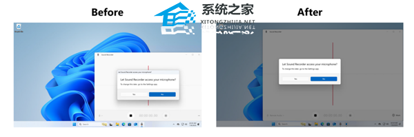 微软调整应用权限的隐私对话框设计。在一个应用请求访问位置、相机、麦克风等权限后,现在将显示系统模态对话框。这些对话框从请求权限的应用中出现时,屏幕将略微变暗,并且隐私对话框会居中显示在屏幕上。