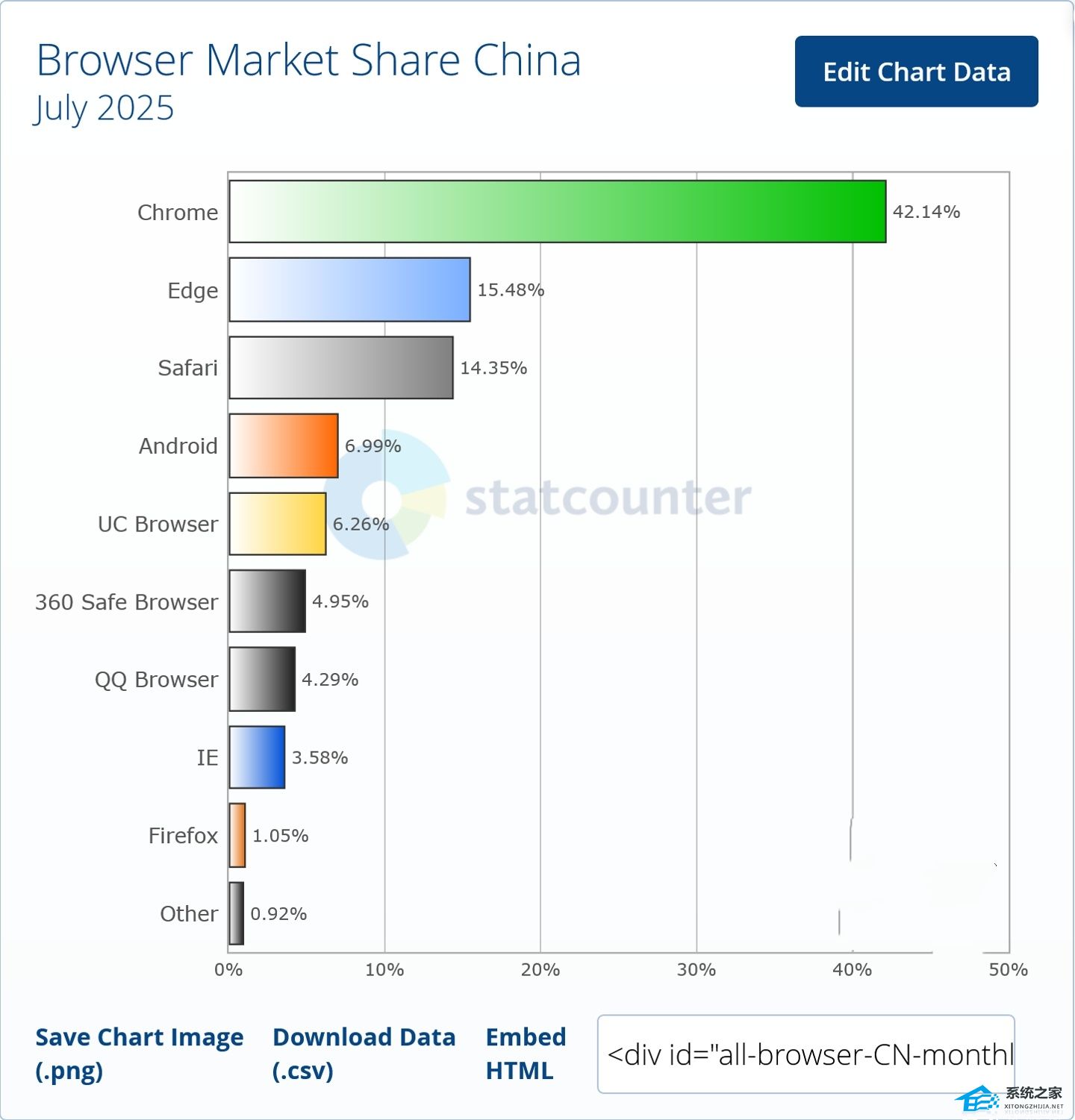 Edge 在 7 月凭借 11.8% 的全球份额排名第二,和上个月(13.06%)下降 ?1.26 个百分点。
