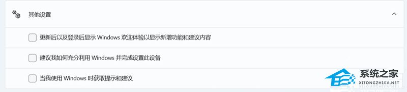 对于不想看到这个界面的系统之家小伙伴,可以在 Windows 11 的设置应用中,打开系统-通知,下滑到最底部找到“其他设置”,将三个选项全部取消勾选即可。