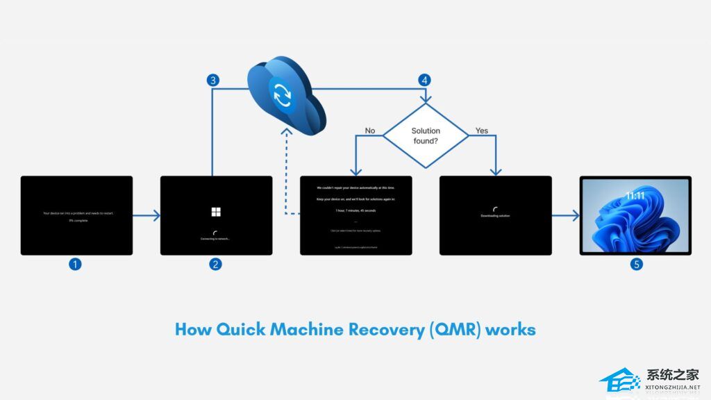 WinRE 已经存在于 Windows 系统中多年,但 QMR 功能通过连接到微软的云诊断,会将您的电脑诊断数据发送到微软的服务器,服务器将分析问题并尝试推送修复方案。