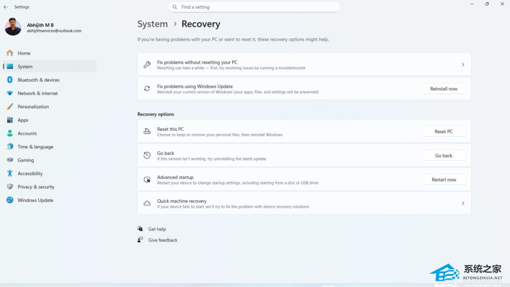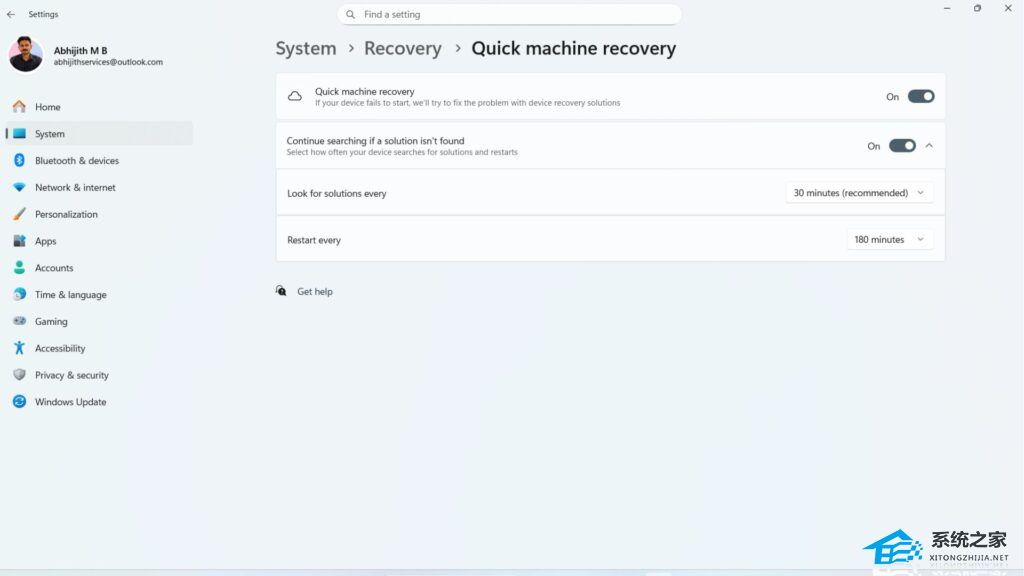 系统之家 8 月 6 日消息,在 Win11 Build 26120.3653 预览版上,用户可以体验到“快速机器恢复”(Quick Machine Recovery,QMR)功能。QMR 功能的引入,可以减轻 IT 管理员的工作负担,帮助用户在电脑启动失败后,通过云支持实现自动诊断和修复启动故障。