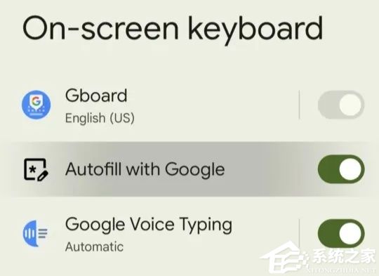 这项功能默认处于关闭状态,用户若要启用,则首先需要在“输入法管理”中启用“Google 自动填充”,在开启后 GBoard 会自动弹出提示让用户开启自动填充。
