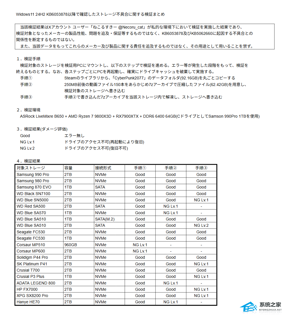 @Nekorusukii 测试发现,当数据传输量超过 50GB 且磁盘空间占用率达 60% 以上时,部分 HDD、SSD 会从系统中消失不可见。