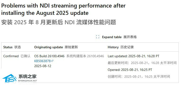 系统之家 8 月 22 日消息,微软最新发布的 Win11 8 月补丁(KB5063878)已被曝出存在多种 Bug。微软现确认,Win11 KB5063878 更新会引发了 NDI 串流问题。微软表示,他们正在积极调查此问题,并建议受影响的用户手动将 NDI 接收模式更改为 TCP 或 UDP。