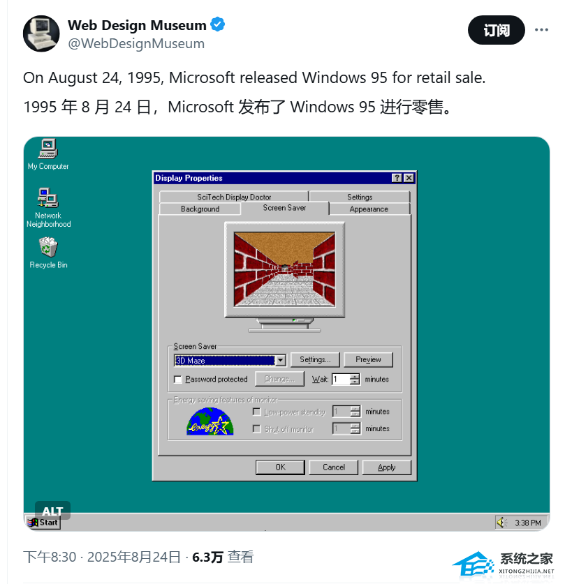 系统之家 8 月 25 日消息,科技媒体发文庆祝 Windows 95 系统发布 30 周年。该媒体称,这不仅是一次产品发布,更成为一次全球性的流行文化事件。Windows 95 系统发布当日,全球多地计算机爱好者彻夜排队抢购,首日销售额达 7.2 亿美元,四天内出货量突破百万套。