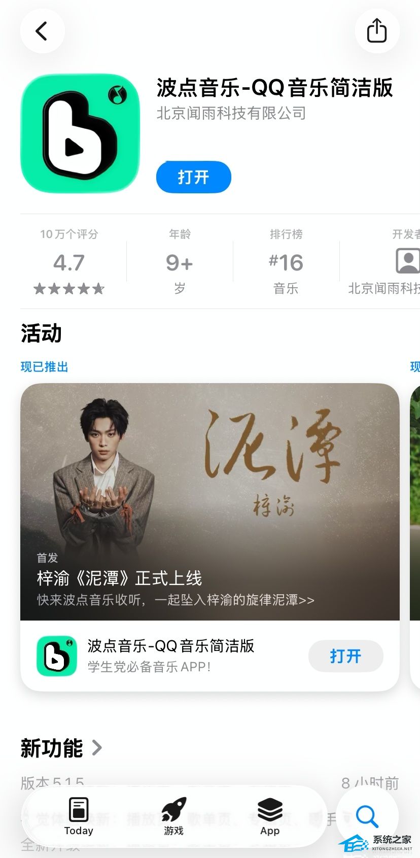 系统之家实测,目前苹果 App Store 商店显示,波点音乐 App 已显示后缀名称为 QQ 音乐简洁版。