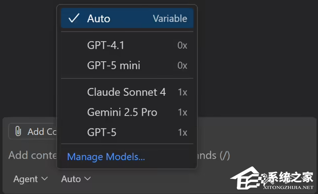 系统之家援引博文介绍,Visual Studio Code 1.104 版引入自动选择模型功能,帮助开发者兼顾性能与速率限制,无需手动切换 AI 模型,系统可自动在 Claude Sonnet 4、GPT-5、GPT-5 mini、GPT-4.1 和 Gemini Pro 2.5 之间选择最优方案。