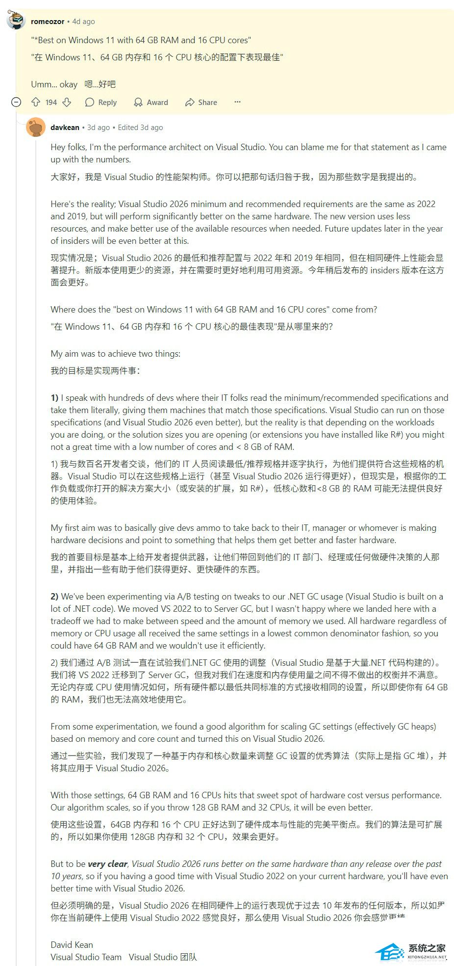 这一推荐配置听起来非常夸张,这是否意味着 Visual Studio 2026 将放弃 32GB 甚至 16GB 内存设备呢?