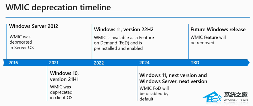 微软表示,建议 IT 管理员改用 PowerShell 或其他现代化工具来执行 WMI、脚本及相关任务,因为未来的 Windows 版本将不再默认包含 WMIC。