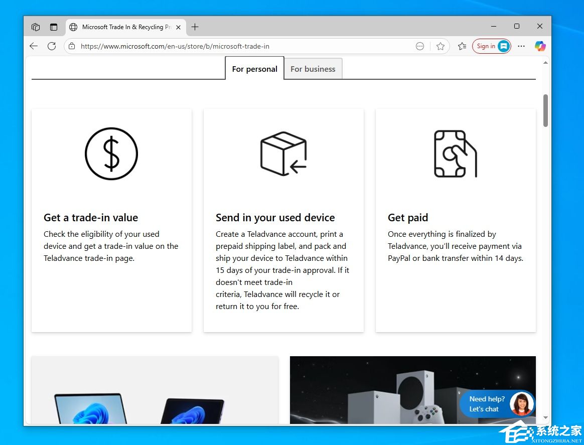用户点击后,将跳转至微软商店在线换新计划,用户可根据设备状况获得一定回收价值,从而让微软更好地处理旧设备并减少电子废弃物。