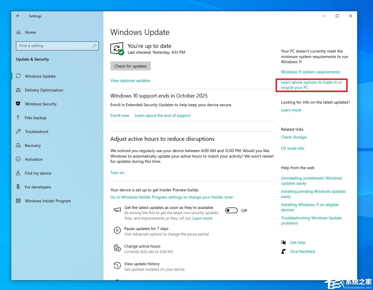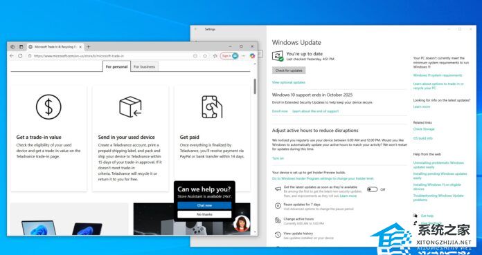 但对于现阶段想要升级到 Windows 11 的用户,微软更新了 Windows 10 更新页面,新增了“了解以旧换新或回收 PC”选项。