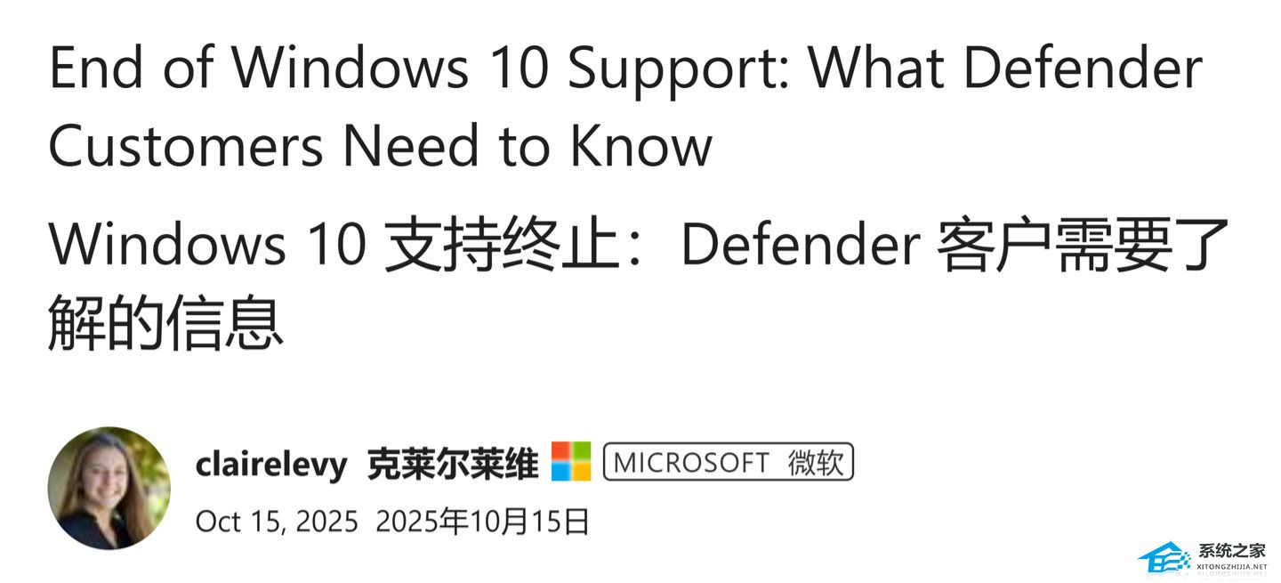 系统之家 10 月 15 日最新消息,Win10 系统已在 10 月 14 日终止支持,但微软明确承诺,Win10 内置的 Defender 安全软件将继续提供病毒、恶意软件检测与防护更新,支持周期延长至 2028 年,同时该系统上的 M365 应用也会同步获得安全更新至 2028 年。