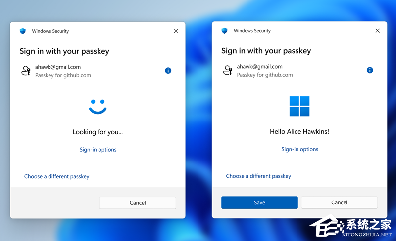 微软强化了 Win11 的安全防御体系,包括钓鱼防护、恶意软件拦截及应用驱动验证机制。Windows Hello 样式更新,可自动选择最安全的登录方式,并支持快速切换至通行密钥(Passkeys)认证。