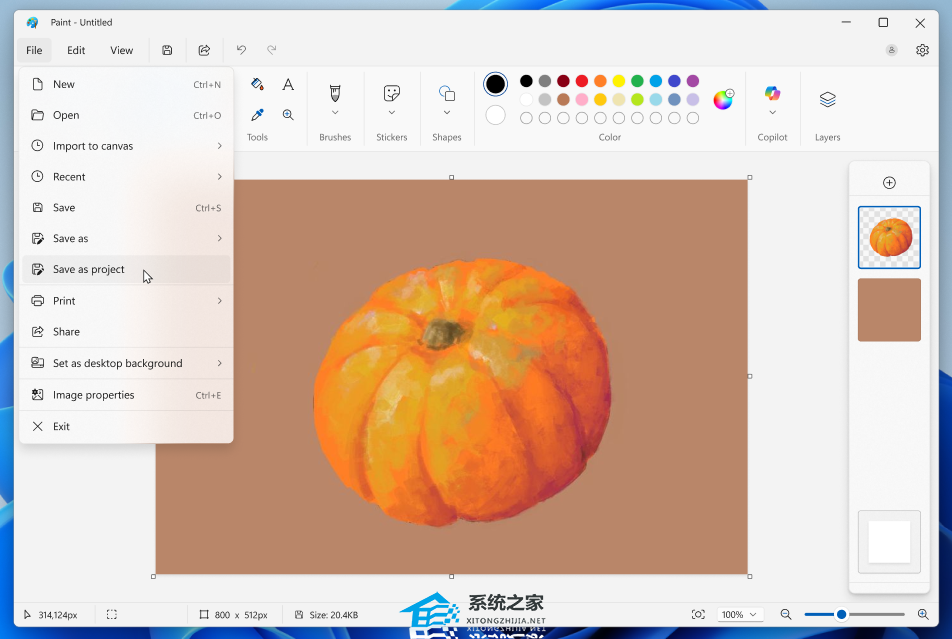 “画图”支持项目文件(.paint)保存与透明度滑块;