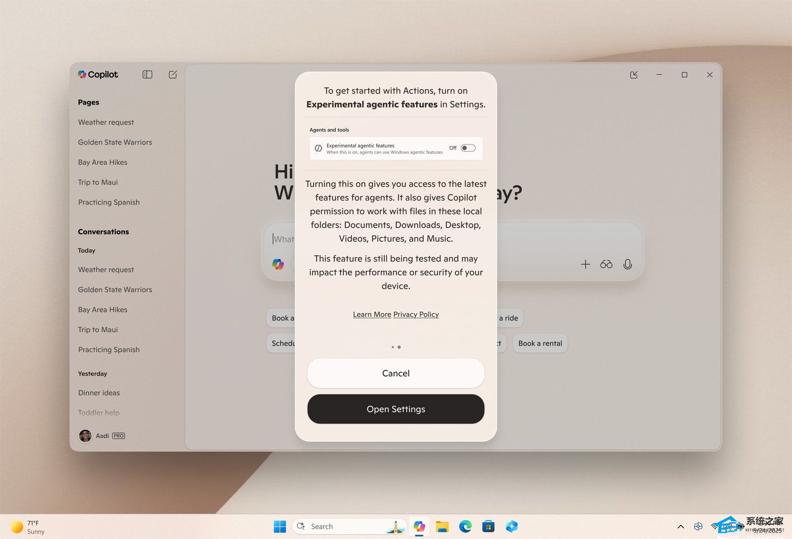 系统之家 10 月 17 日最新消息,微软邀请 Windows Insider 项目成员,在 Win11 系统上测试 Copilot Labs 上的新功能 Copilot Actions。该功能允许 AI 智能体代表用户执行本地文件操作和应用程序任务,用户需手动启用并通过四项安全原则保障隐私。