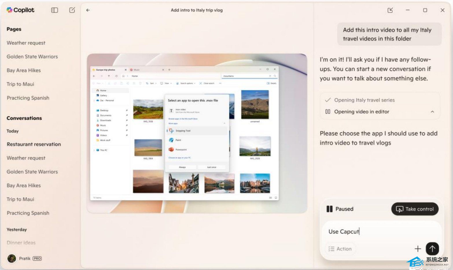 Microsoft Copilot Actions 正在处理本地视频