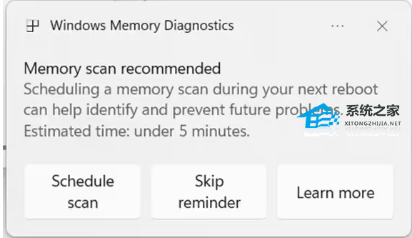 系统之家 10 月 29 日消息,微软即将为 Win11 系统新增一项十分实用的功能,那就是当电脑出现蓝屏之后提示扫描内存,可快速定位出现蓝屏的原因,防止出现更严重的事故。而目前 Dev 与 Beta 通道用户可以率先体验。
