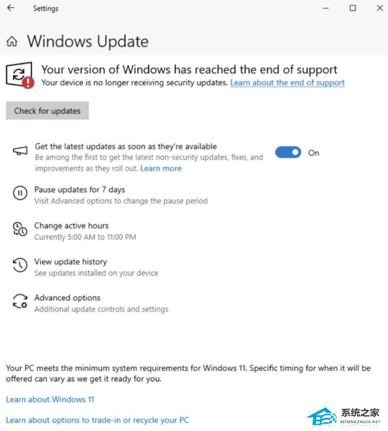 系统之家 11 月 5 日最新消息,微软已修复 Win10 系统中“催更式”弹窗 BUG,该 BUG 导致大量仍在支持期内的设备错误弹出“您的 Windows 版本已停止支持”提示。微软澄清这仅是界面显示错误,不影响安全更新接收,现已通过服务端推送修复,检查更新并重启后,提示预计 24 至 48 小时内消失。