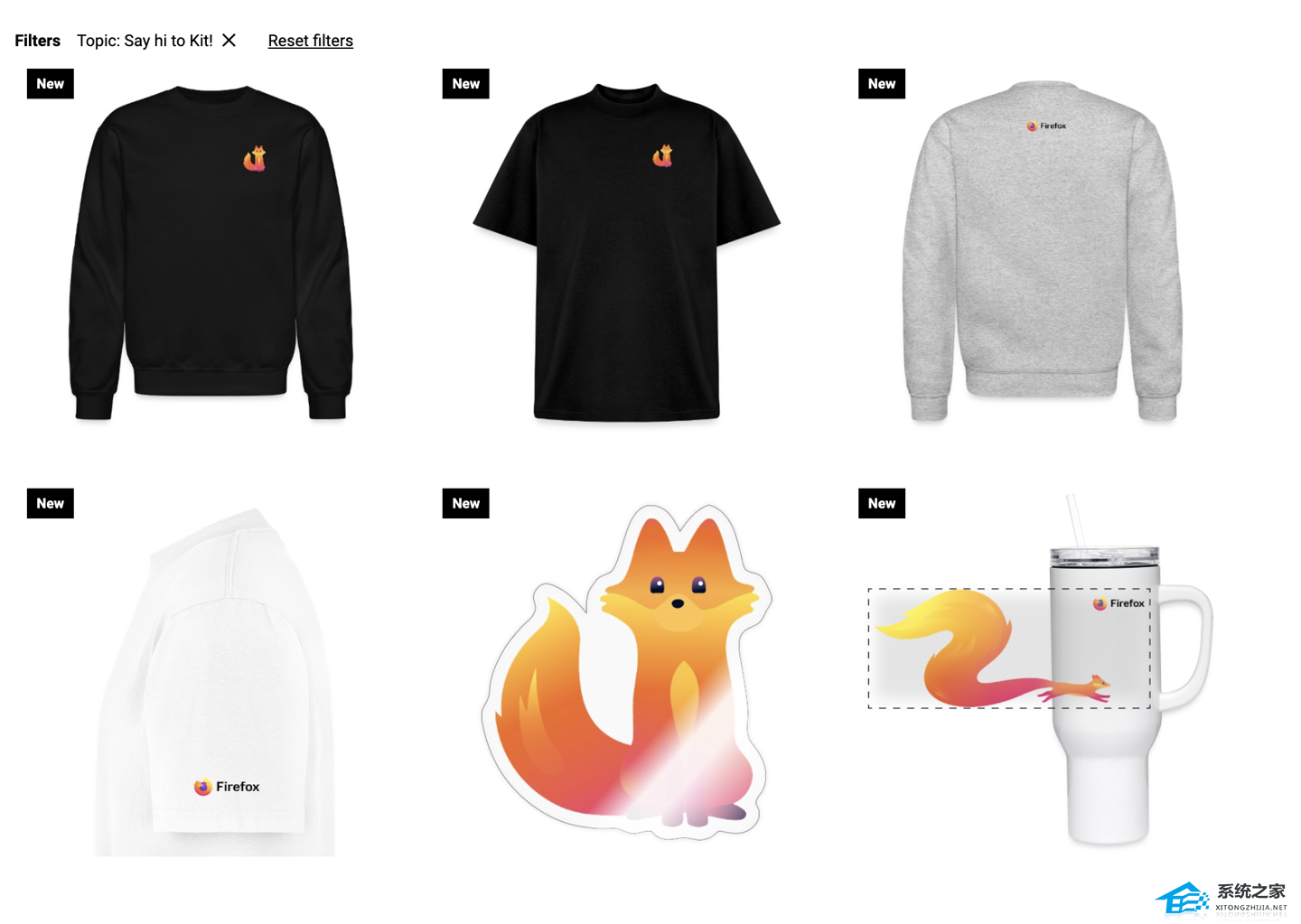 据系统之家了解,为了庆祝 Kit 的亮相,印有新吉祥物的官方商品现已在美国和欧洲发售,包括 T 恤、贴纸和旅行杯。同时,电脑端的火狐浏览器还将迎来一个全新的标签页背景,其以狐狸元素为特色。