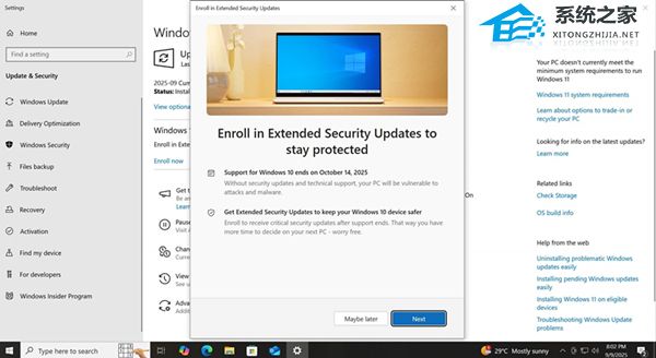 《微软承认 Win10 KB5066791更新存在Bug!ESU 扩展设备误报终止支持
