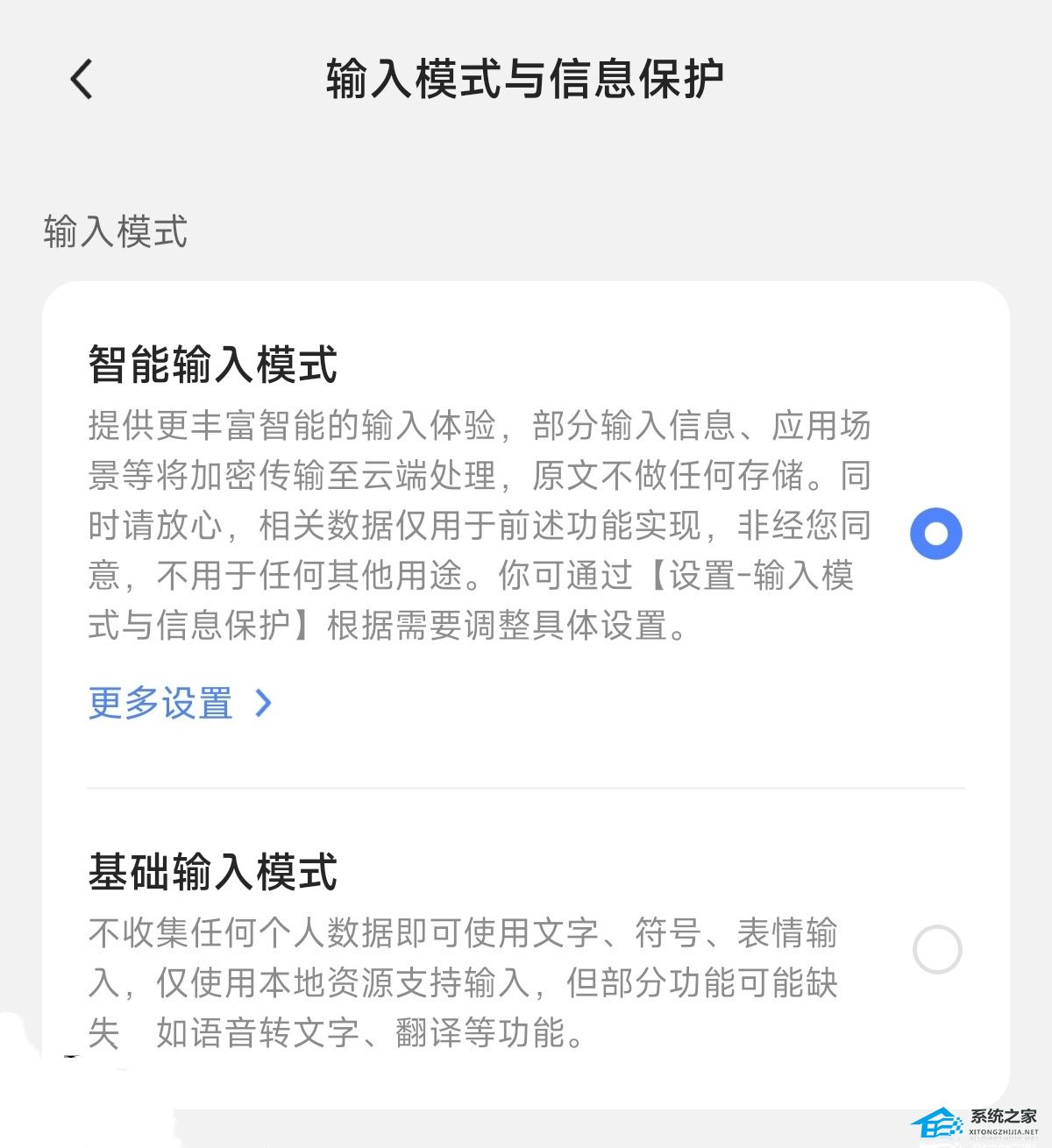 此外,该输入法还拥有智能输入、基础输入两种模式,其中前者会将部分输入信息、应用场景等传输至云端处理;而后者则不会收集任何个人信息,使用本地资源进行输入,但确实语音转文字、翻译等功能。