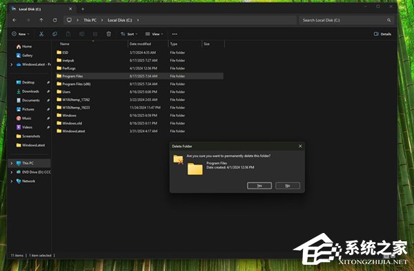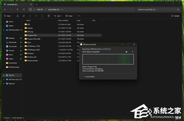 对于深色模式用户而言,本次更新解决了文件资源管理器中长期存在的视觉割裂问题。微软重新设计了复制、移动、确认及删除等对话框的 UI,让其能正确跟随系统深色主题,消除了以往操作时突然出现的白色弹窗。系统之家附上相关图片如下: