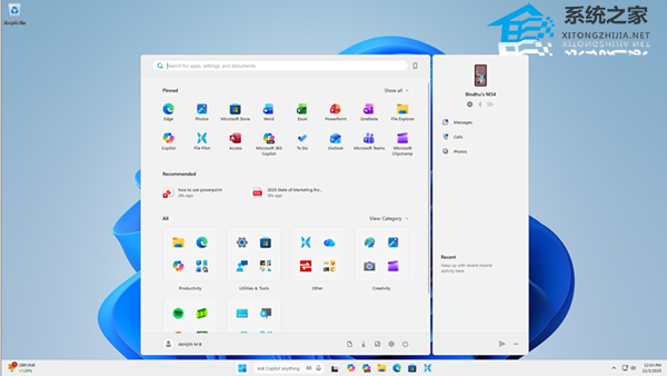 此外,新版菜单提供了三种应用排列视图:“分类视图”可按生产力、娱乐等类别自动分组应用;“网格视图”则模仿了手机桌面的图标布局;传统的“列表视图”也得以保留。这些改进旨在为用户提供更灵活、更统一的操作体验。系统之家附上演示视频如