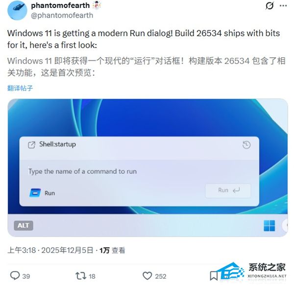 系统之家 12 月 5 日最新消息,微软正面向 Windows 11 用户测试全新的“运行”(Win + R)对话框,代号“Modern Run”,而这也是该功能自 1995 年 Windows 95 发布以来首次重大更新。此次改动反映微软对系统细节体验的持续优化,未来或将进一步更新文件属性、注册表编辑器等传统界面。