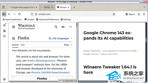 系统之家 12 月 10 日最新消息,Mozilla 发布了 Firefox 浏览器 146 稳定版,此次更新引入了“分屏视图”(Split View)模式,支持用户在单窗口内并排浏览标签页。该功能默认处于隐藏状态,需通过简单设置手动激活。